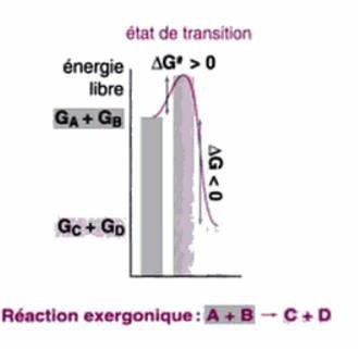 ΔG < 0 la réaction se déroule spontanément. processus exergonique.