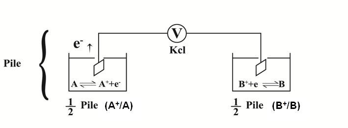 Constante de Faraday : F = 96500 J/ V. mole (Coulombs).