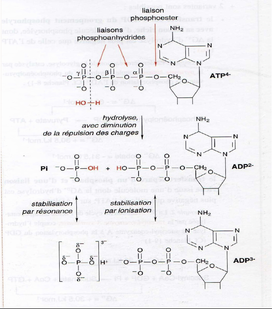serrée (S) : le site actif se resserre sur les substrats et les condense en ATP pour lequel il a une très grande affinité : l’énergie mécanique de contraction du site actif provoque la formation d’une liaison ester phosphorique entre l’ADP et le Pi ;