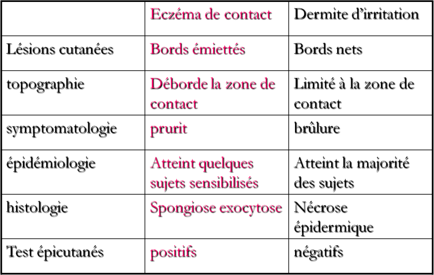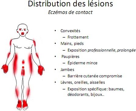 Les lésions sont initialement localisées à la zone de contact avec l’allergène; elles peuvent ensuite diffuser à distance.