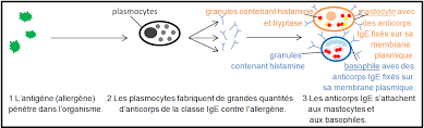 Les IgE ainsi produites se fixent à la surface des cellules inflammatoires .Elles sont détectables par les tests cutanés ou dosables dans le sang.