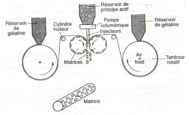 Il consiste à réaliser un double filet d’huile à encapsuler et de masse gélatineuse.