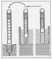 Figure 6: Remplissage du corps des gélules par arasage et tassement ou bourrage alterné