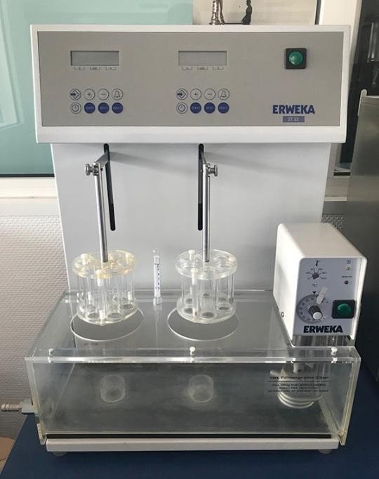 La Pharmacopée propose quatre procédés : l’appareil à palette, l’appareil à panier, l’appareil à piston et la cellule à flux continu.