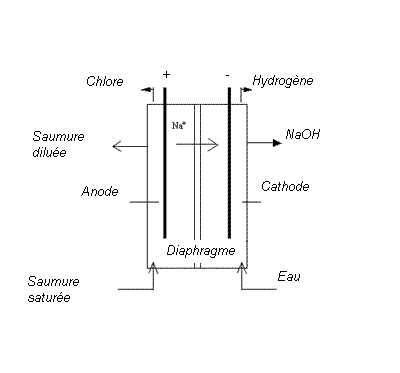 Le dichlore Cl2 est obtenu comme sous-produit à l’anode.
