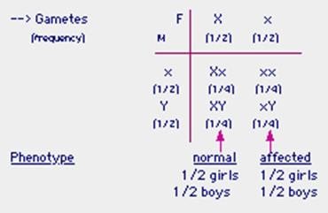 -Dans la fratrie des atteints, un garçon sur deux est malade, et une fille sur deux est conductrice.