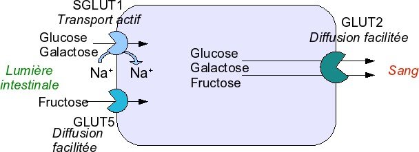 Le galactose utilise le même transporteur actif que le glucose pour son entrée dans l’entérocyte.