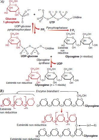 La structure ramifiée du glycogène est liée à l’action d’l’enzyme branchant ou amylo (α1−4) (α1−6)