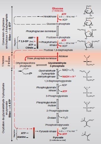 La réaction catalysée par l’aldolase est importante car cette étape marque la scission du glucose en 2 intermédiaires métaboliques importants.