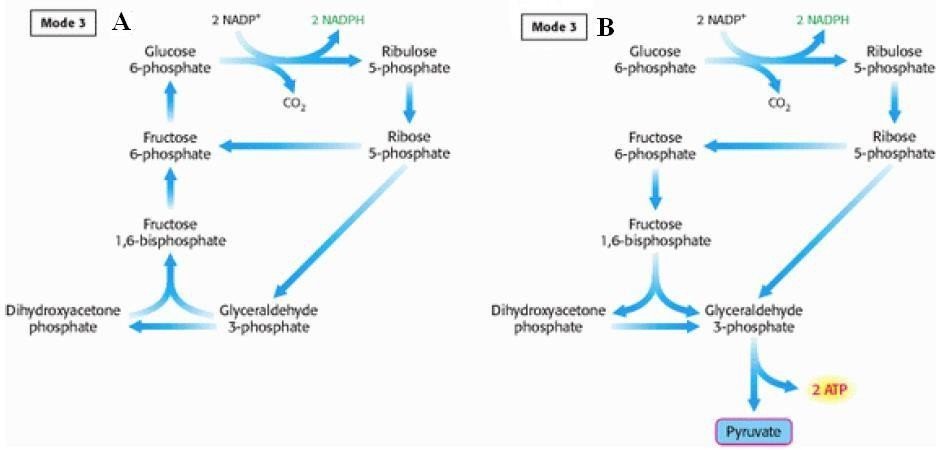Les besoins en ribose-5-phosphate sont supérieurs au besoins en NADPH,H+ ex : les cellules à multiplication rapide.