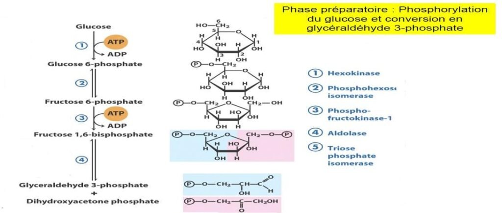 Phase 1 : c’est une phase préparatoire au cours de laquelle le glucose est phosphorylé puis scindé pour