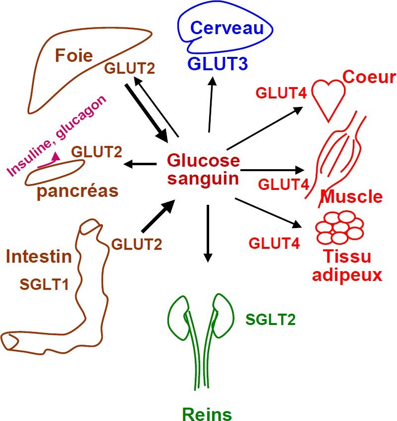 Le foie et le tissu adipeux: utilisent peu le glucose, seulement en période post- prandial.