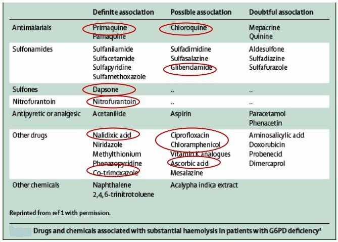 Tableau 1 : liste de médicaments déclenchant une hémolyse en cas de déficit en G6PD.