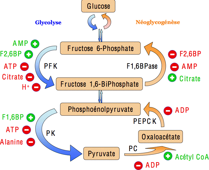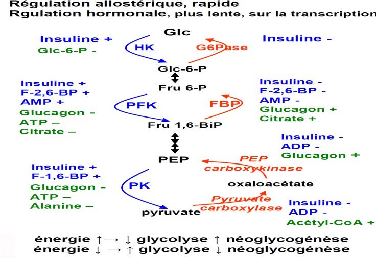 La régulation met en jeu des mécanismes allostèriques et des modifications covalentes sous contrôle hormonal.