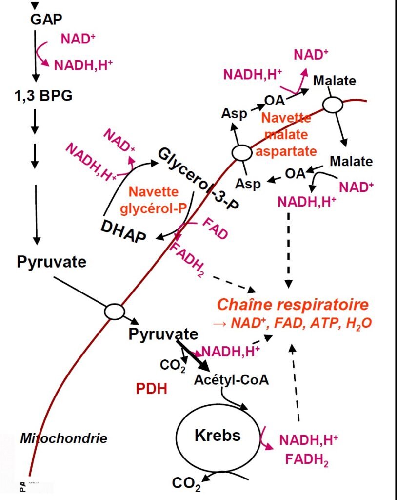 le transfert d’atomes d’hydrogène et d’électrons au NAD pour former du NADH.