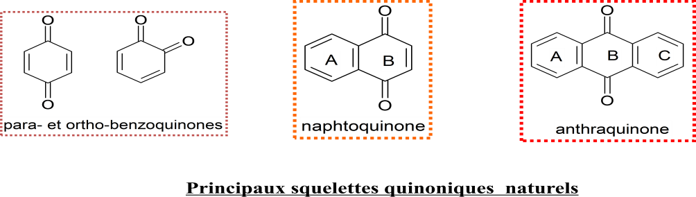 Les quinones des composés oxygénés aromatiques provenant de l’oxydation de diphénols, caractérisés par un motif p-quinone ou o-quinone.