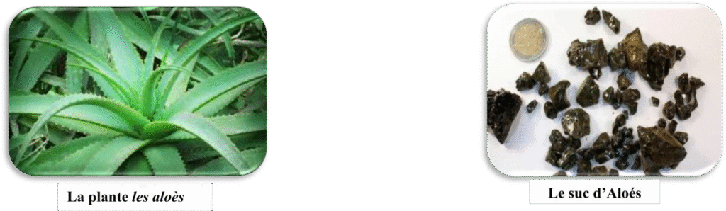 Aloès des Barbades: suc épaissi et séché provenant des feuilles sous forme de masse brun foncé, contient au min 28% d’anthracénosides exprimés en Barbaloines