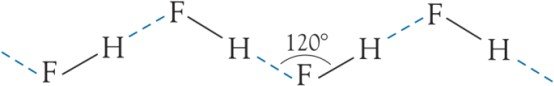 Dans le cas de HF, son point d’ébullition anormalement élevé et sa faible dissociation en solution, sont dus à la liaison hydrogène formée entre les molécules HF.