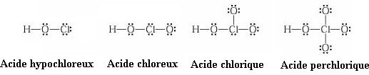 | HXO | Acide hypohalogéneux | XO– | Anion hypohalogénite |