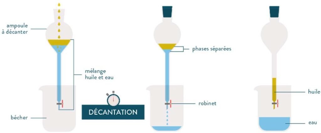 La séparation se réalise en laissant seulement se reposer le mélange.