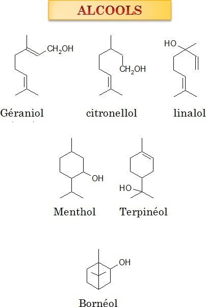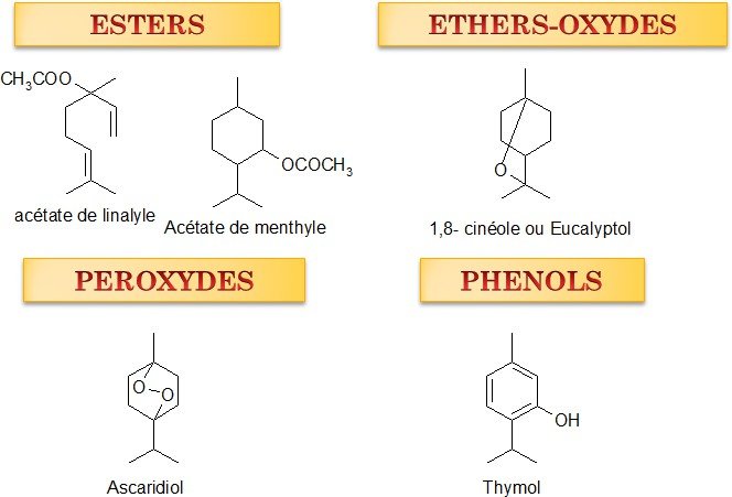 Ils constituent + 90% des HE, Plusieurs variations structurales existent telle que: alcools, aldéhydes, cétones, phénols…