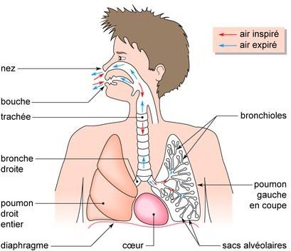 La respiration nécessite la participation de très nombreux organes : une commande centraleune afférence nerveuseun soufflet musculo-squelettique, des voies aériennes supérieures et inférieures qui doivent être intègres.