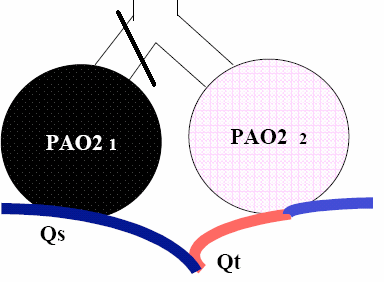 Effet shunt intra pulmonaire: zones pulmonaires dont la ventilation est faible ou absente par rapport à la perfusion.