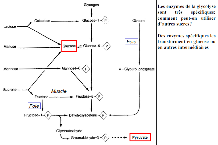 Le glucose 6-peut entré dans la glycolyse dans le foie et dans le muscle.