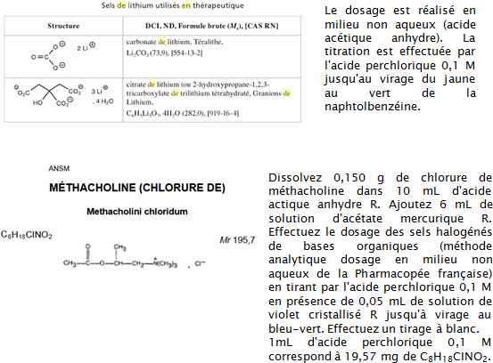 Les méthodes sont codifiées et l’on trouvera de multiples applications notamment dans toutes les pharmacopées.