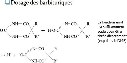 les énols, imides, sulfonamides, barbituriques (DMF ou l’acétone)